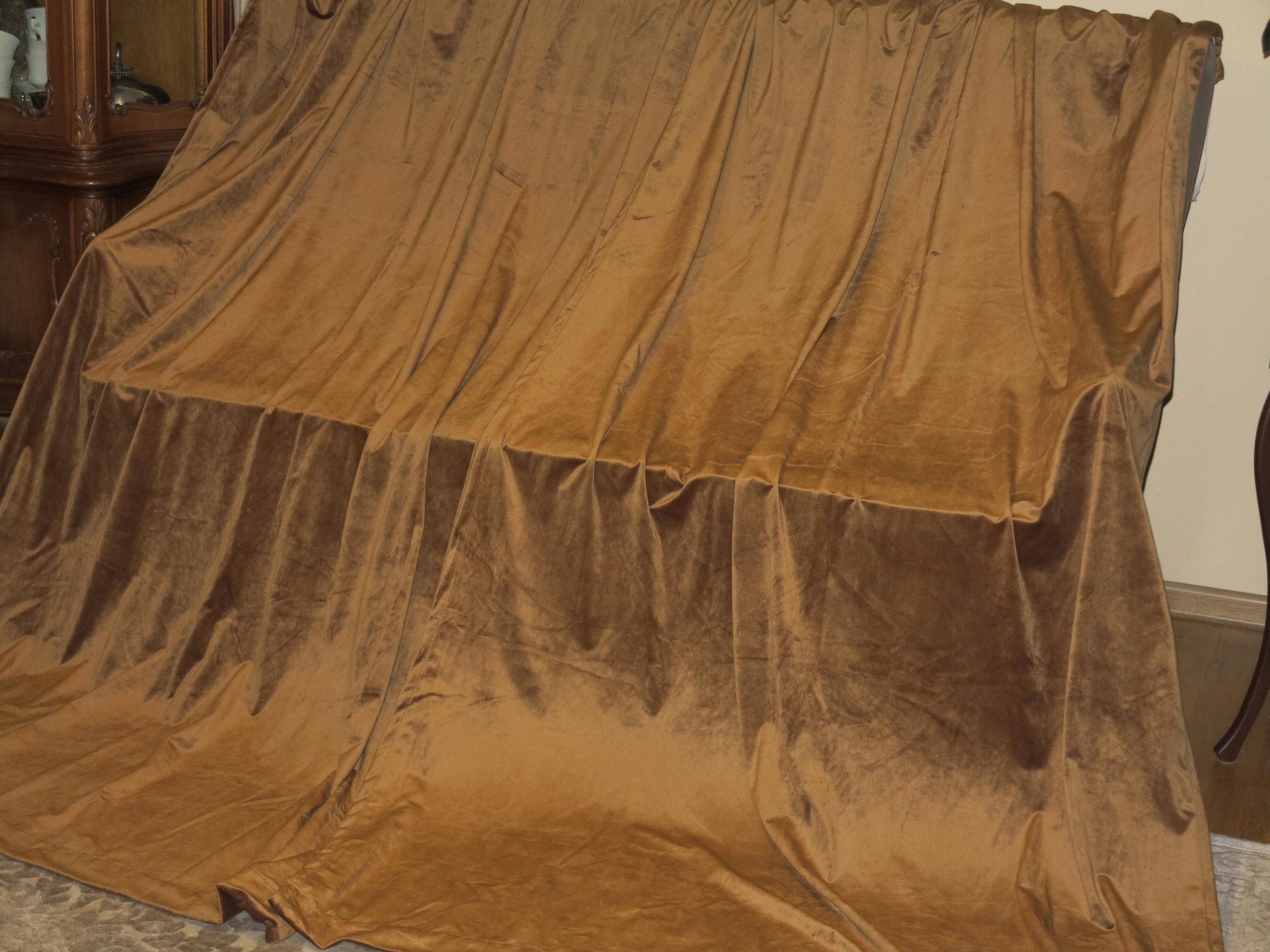 ребенок- красивый набор штор компании из мясистого бархатного бархата в карамель/ золотом меде. Цвет еще приятнее, как на картинках. Ткань очень хорошее качество