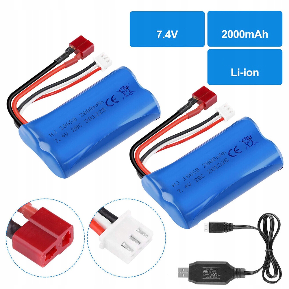 Набор из 2 литий-ионных батарей 7,4 В 2000 мАч с USB-зарядным устройством