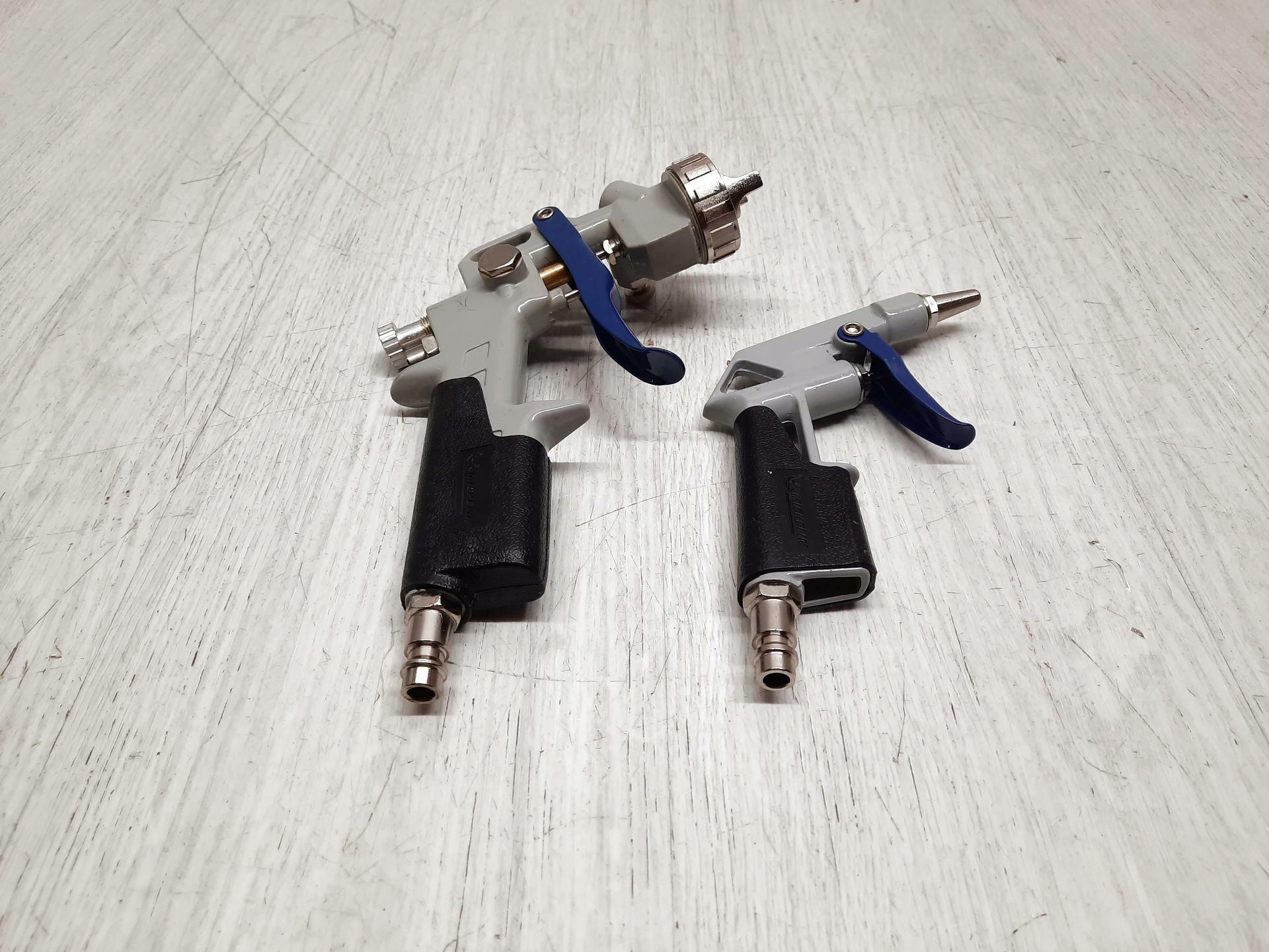 Этот комплект — идеальное решение для ежедневных задач по выдуванию, надуванию, покраске или чистке. Он состоит из 5 различных инструментов, а именно: короткой насадки, воздуходувки, гравитационного пистолета-распылителя, алюминиевого распылителя и шланга для соединения компрессора и пневматического инструмента.