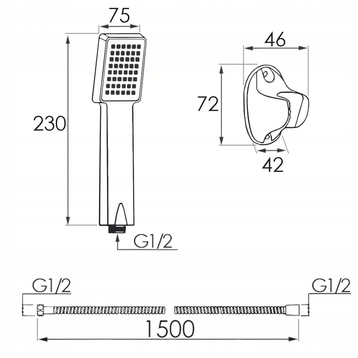 Одиночная насадка для душа в наборе с шлангом и ручкой на стене .