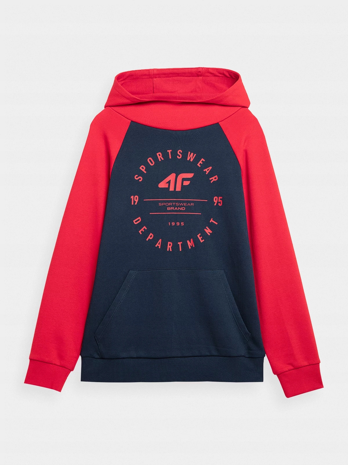 Толстовка для мальчиков 4F с большим логотипом спереди. Толстовка надевается через голову, имеет нерегулируемый капюшон, манжеты на рукавах и внизу, карман-кенгуру. Изготовлен из приятной на ощупь ткани с высоким содержанием хлопка. Классический спортивный крой обеспечит комфорт каждый день.