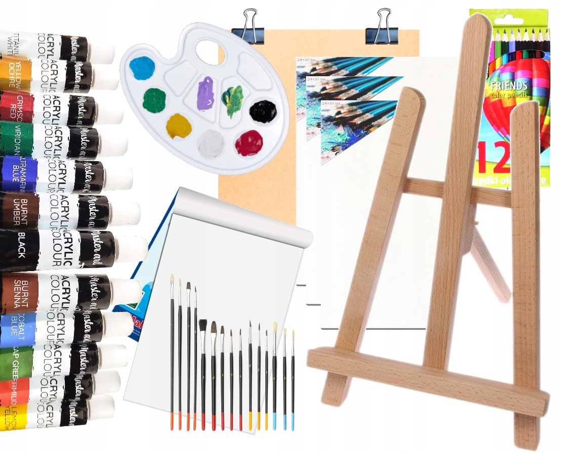 КОМПЛЕКТ ФАРБКИ Щітки для фарб Міні мольберт 43см