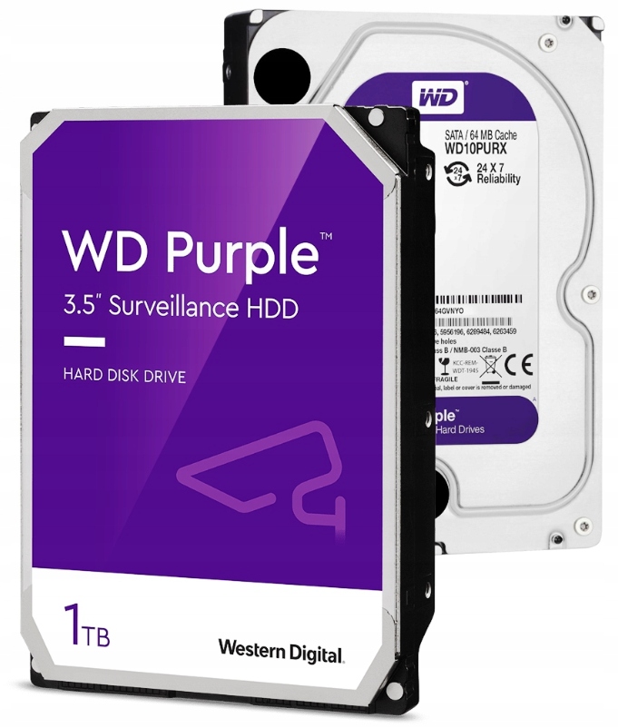 Диск, входящий в комплект, представляет собой модель из серии Purple, предназначенную для мониторинга, отличающуюся более длительным сроком службы.