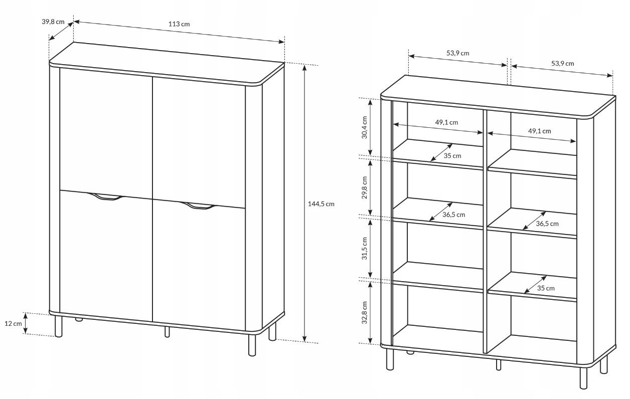 - низкая витрина (ширина 113 / высота 144,6 / глубина 39 . 9 см)