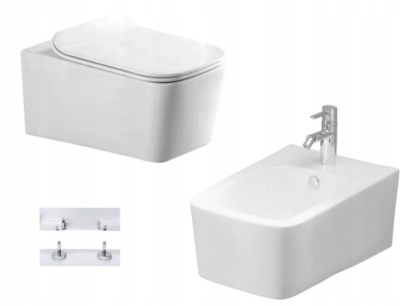 Комплект Mexen - каркас унитаза + каркас биде + унитаз + плавно закрывающееся сиденье + кнопка смыва + 2 коврика