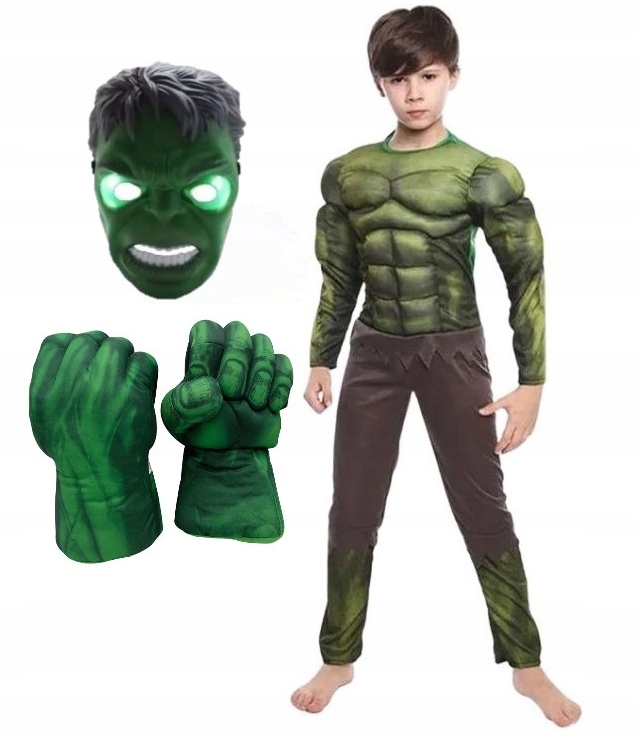 КОМПЛЕКТ ОДНОРАЗОВА МАСКА ХАЛКА МОНСТРА МУТАНТ КОСТЮМ НА КАРНАВАЛЬНИЙ БАЛ 110 / 116