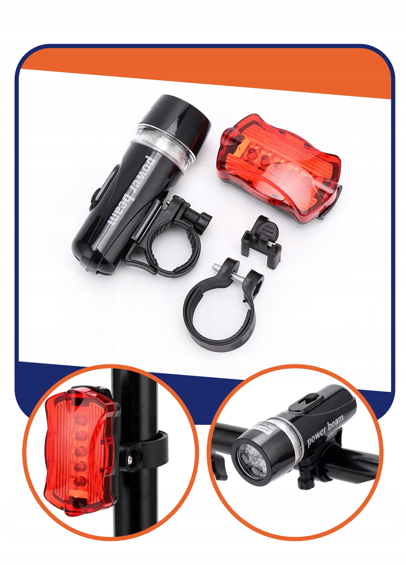 ➡️ Набор фонарей, которые обеспечат вашу безопасность в велосипедной поездке. Комплект готов к сборке – никаких дополнительных инструментов не требуется. Универсальный дизайн делает фары идеальными для любого типа велосипеда. Особая конструкция отражателя не позволяет ослеплять других водителей. Задний фонарь обеспечивает отличную видимость велосипедиста.