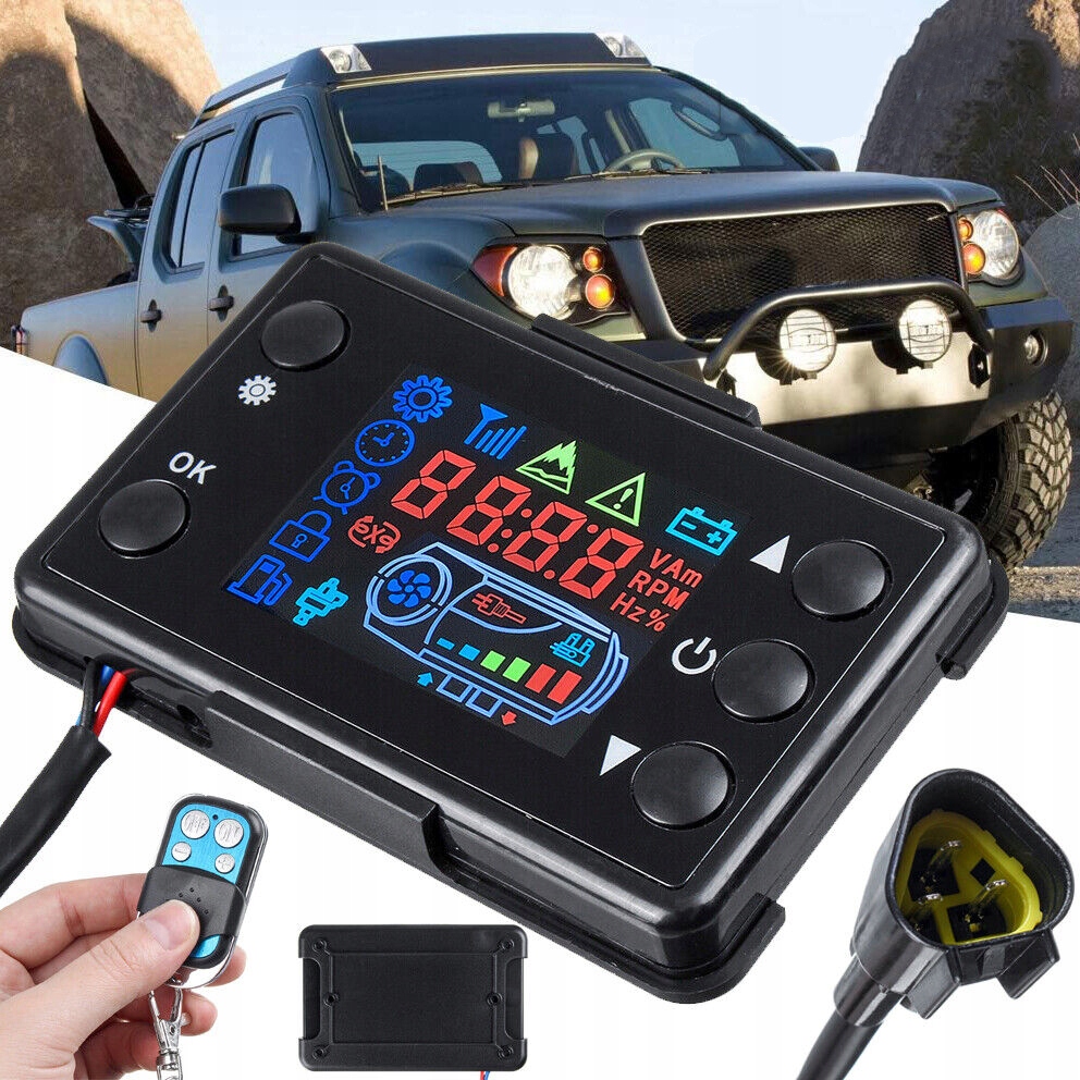 ★ Технические характеристики: Размер: прибл. 9,5 х 6 х 1,4 см, размер пульта дистанционного управления: ок. 5,5 х 3 х 0,8 см. Для пневматического отопителя, с дистанционным управлением (без аккумулятора) ЖК-дисплей, панель переключателей 12/24 В