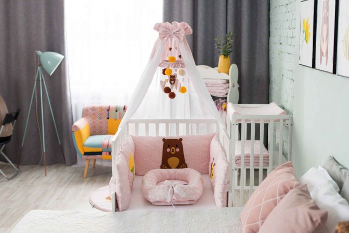 Подушки наполнены антиаллергенными силиконовыми шариками, наволочки с вышивкой снимаются для стирки. Все перевязано бантиками.