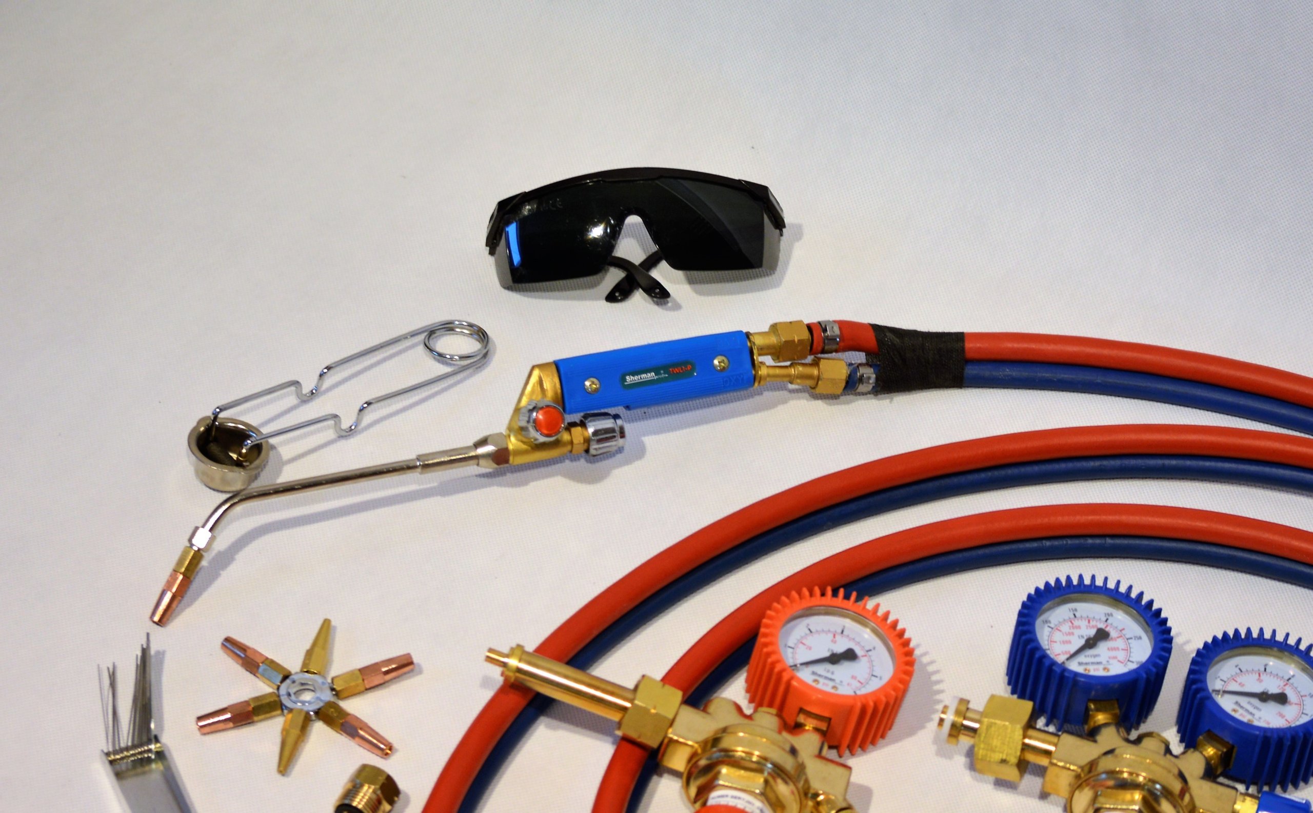 набор горелки с соплами, редукторами и подключенным кабелем.