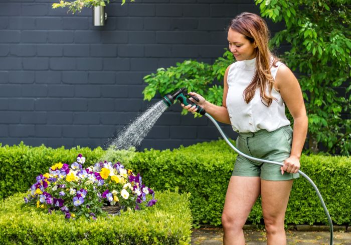 Насадка/разбрызгиватель: Поворотом ручки Насадка позволяет легко регулировать струю воды: от широкого распыления до сильной струи. Очень полезен для различных задач, таких как полив сада и смывание остатков мыла, например, с автомобиля.