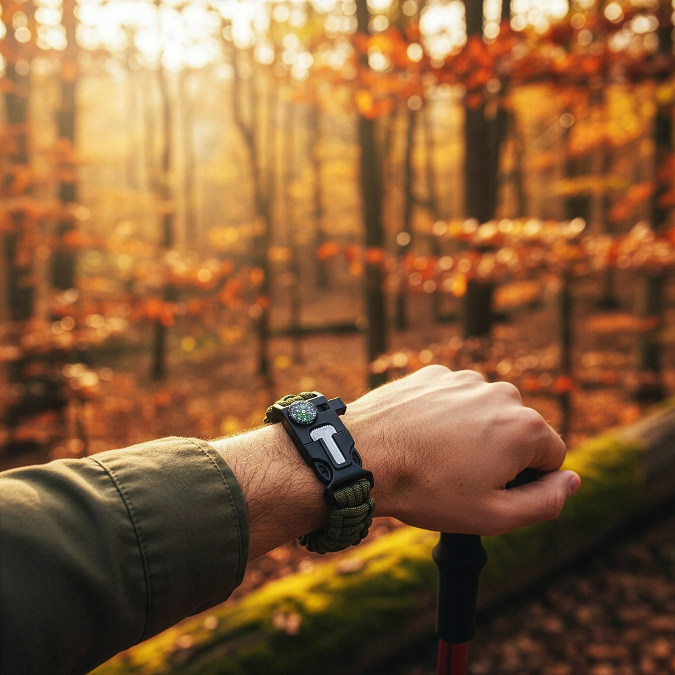 ☑️ Паракордовый ремешок с компасом, свистком, зажигалкой и ок. 350 см паракорда