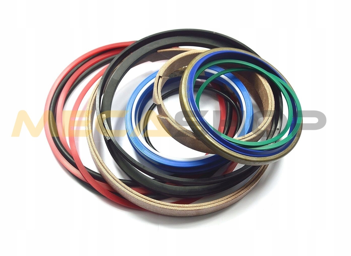 Комплект уплотнений был составлен на основе многолетнего опыта обслуживания машин Mecalac. Все герметики имеют высокие показатели давления и антивыдавливающие кольца, что дополнительно увеличивает их долговечность. В комплект входит набор сменных элементов (уплотнения, скребок, направляющие, опоры и уплотнительные кольца).