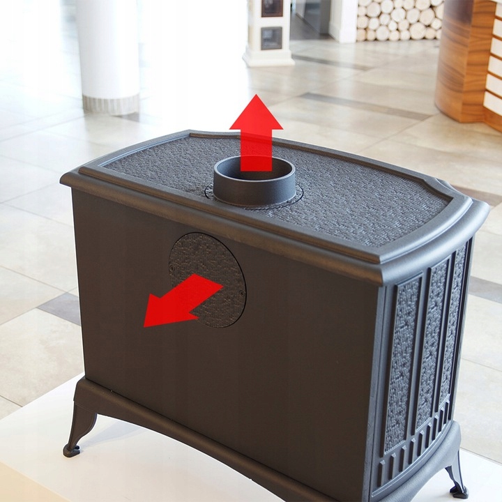 - Возможность установки отвода выхлопных газов сзади или сверху печи.