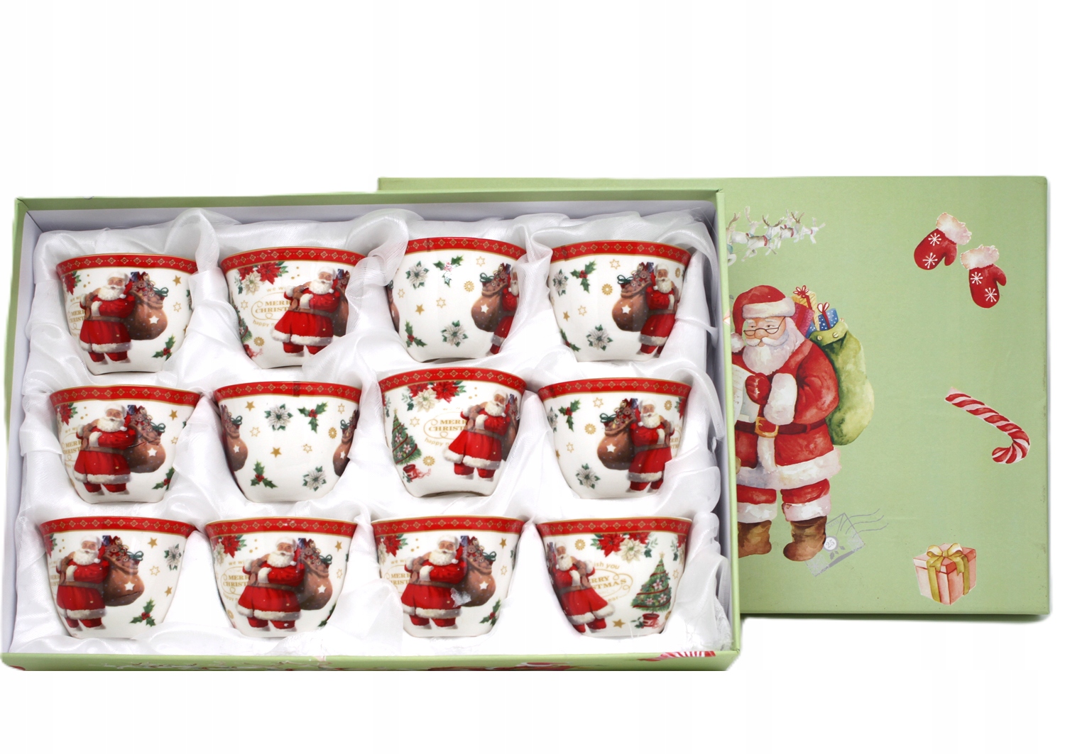 KOMPLET 12 ŚWIĄTECZNYCH KUBECZKÓW/FILIŻANEK 80ML W OZDOBNYM OPAKOWANIU