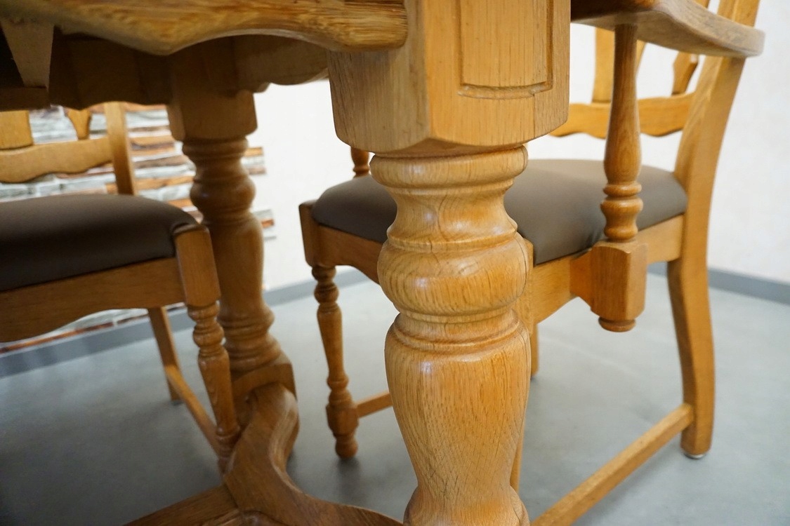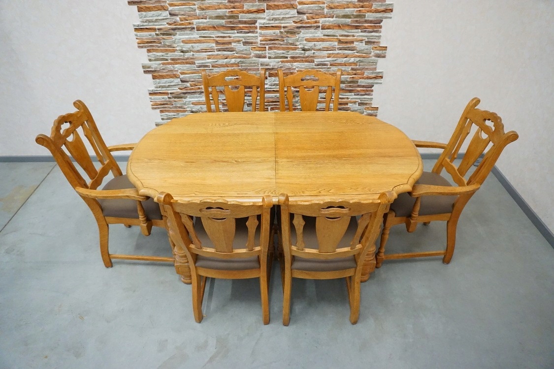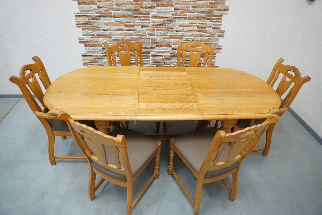 РАСДВИЖНОЙ СТОЛ + 6 ДУБОВЫХ СТУЛЬЕЙ