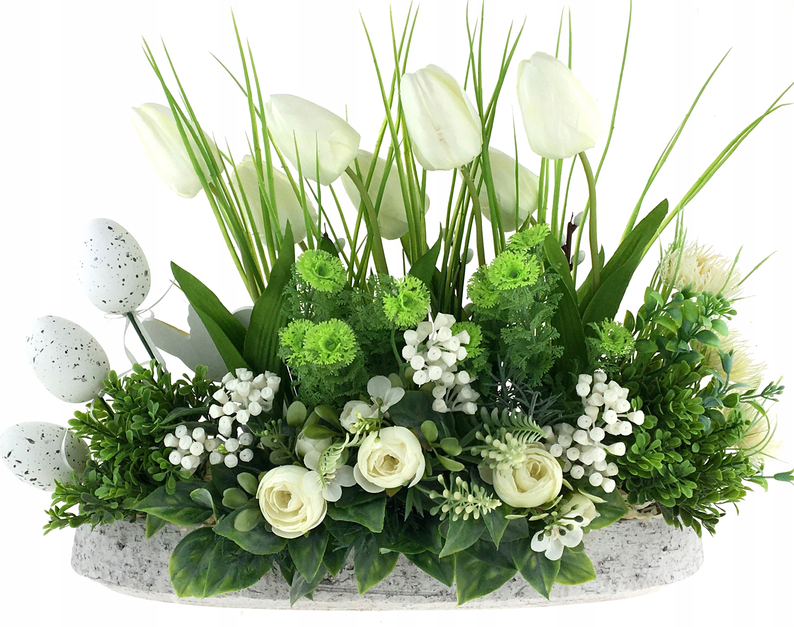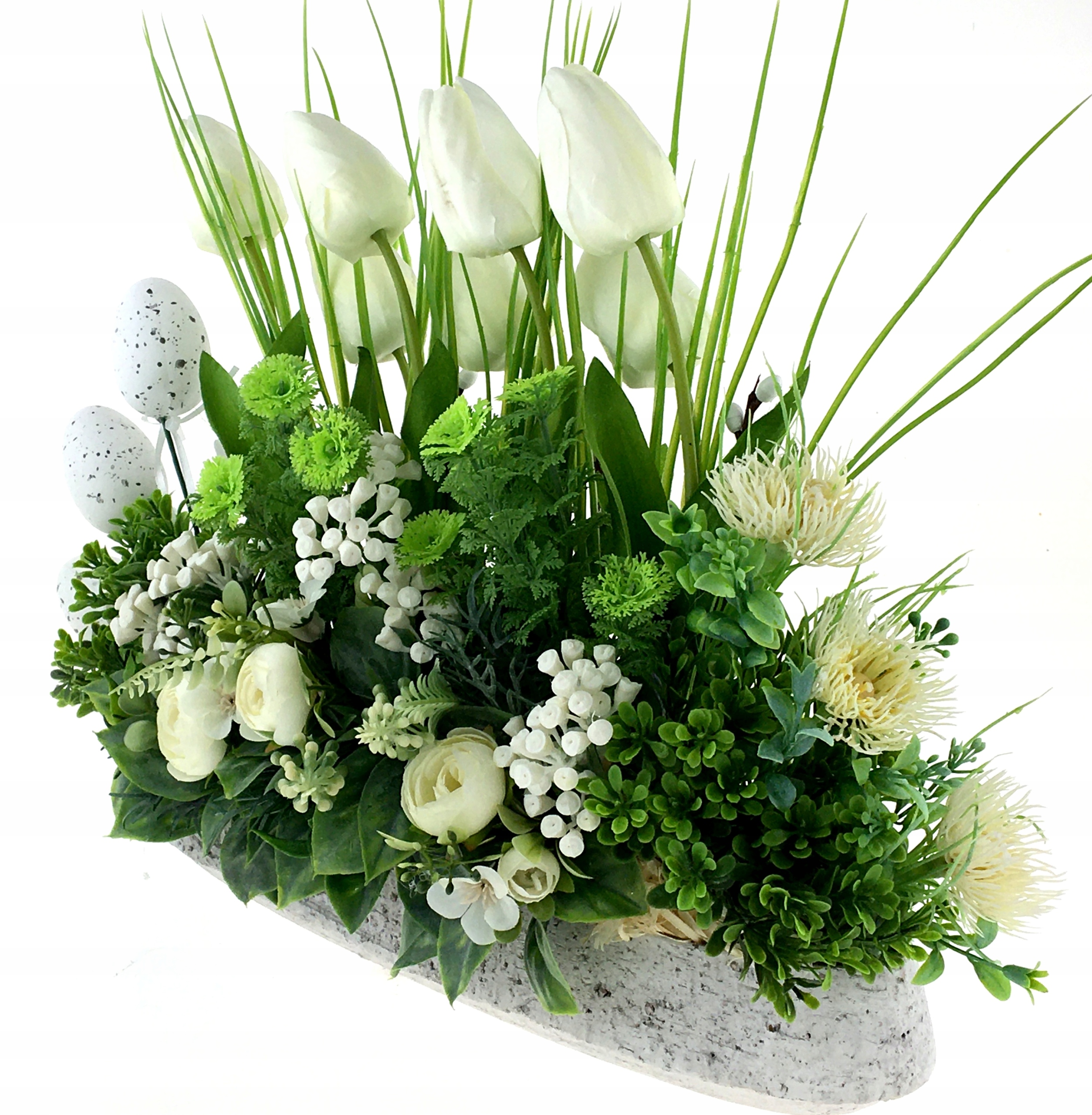 Изысканное украшение — новогодний сюжет, выполненный вручную в нашей мастерской. Украшение выполнено на основе серой бетонной икебаны с изящными растениями, керамическими лисичками, яйцами, мхом и другими декоративными элементами. Все выполнено в серых, белых и зеленых тонах.