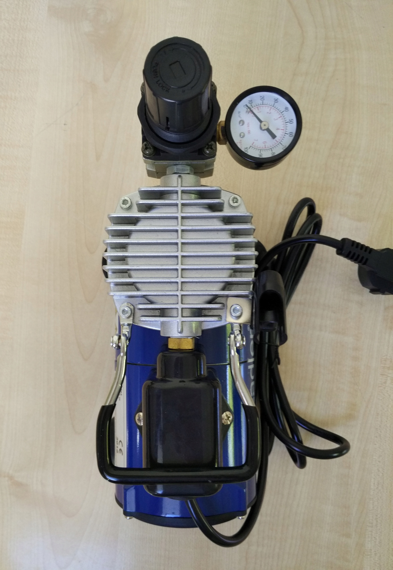 AD-4001 имеет реле давления, управляющее компрессором, и фильтр-редуктор, выполняющий роль расширителя. бак, компрессор не сжимает воздух, если в этом нет необходимости (не нажат курок аэрографа). Реле давления автоматически выключается при давлении 4 бар и включается, когда давление падает до 3 бар.