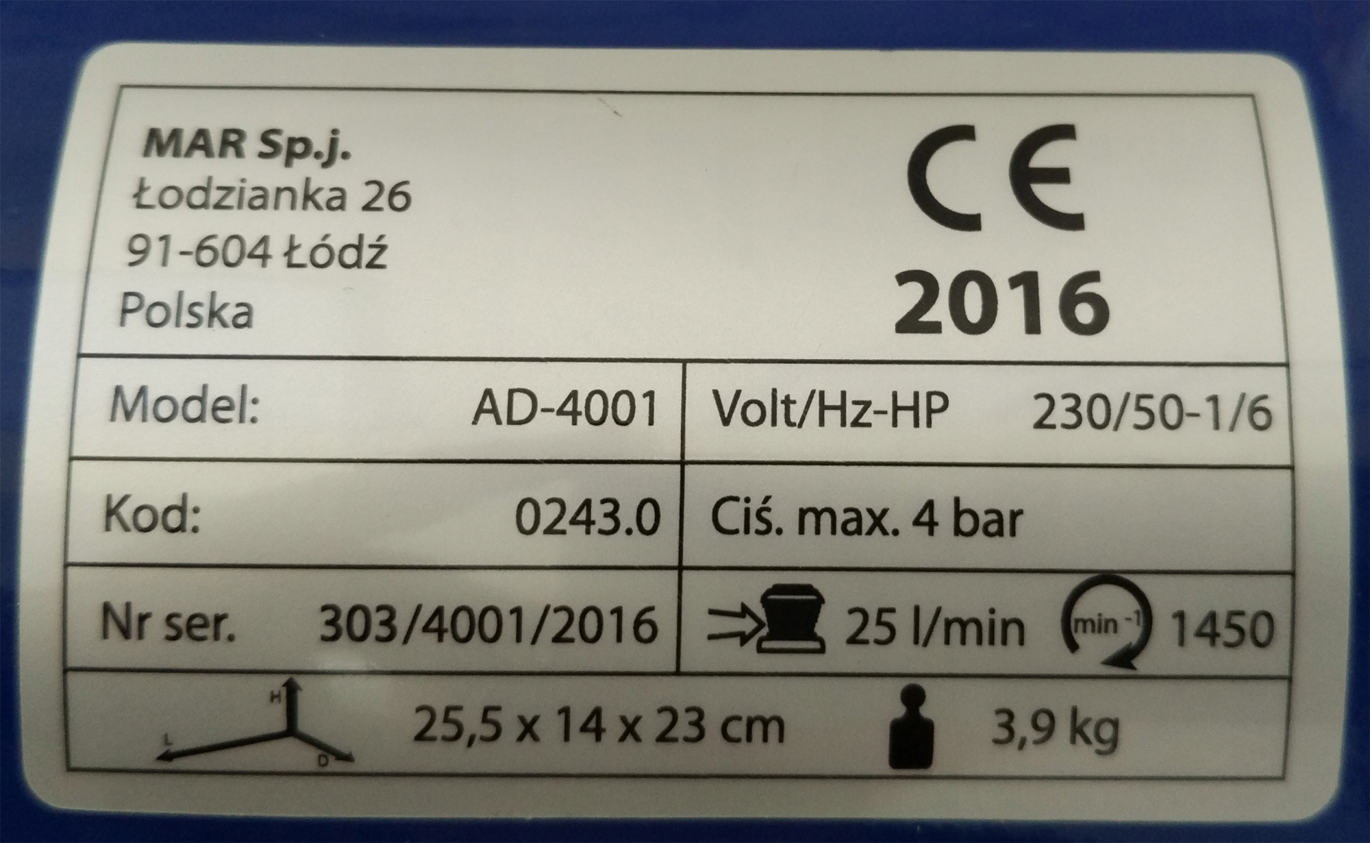 КОМПРЕСОР МОДЕЛЬ ADLER AD-4001
