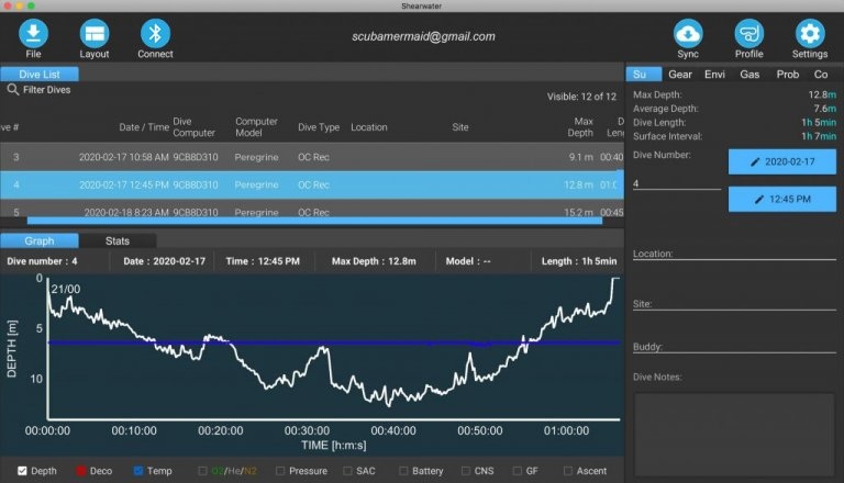 Shearwater Diving Computer Peregrine TX BT 2,2 "LCD - 3 газовой нитрокс - черный