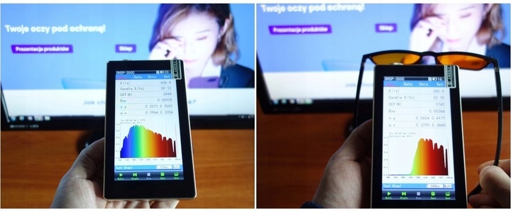 Здесь мы также можем увидеть, какую дозу вредного света блокируют наши очки.