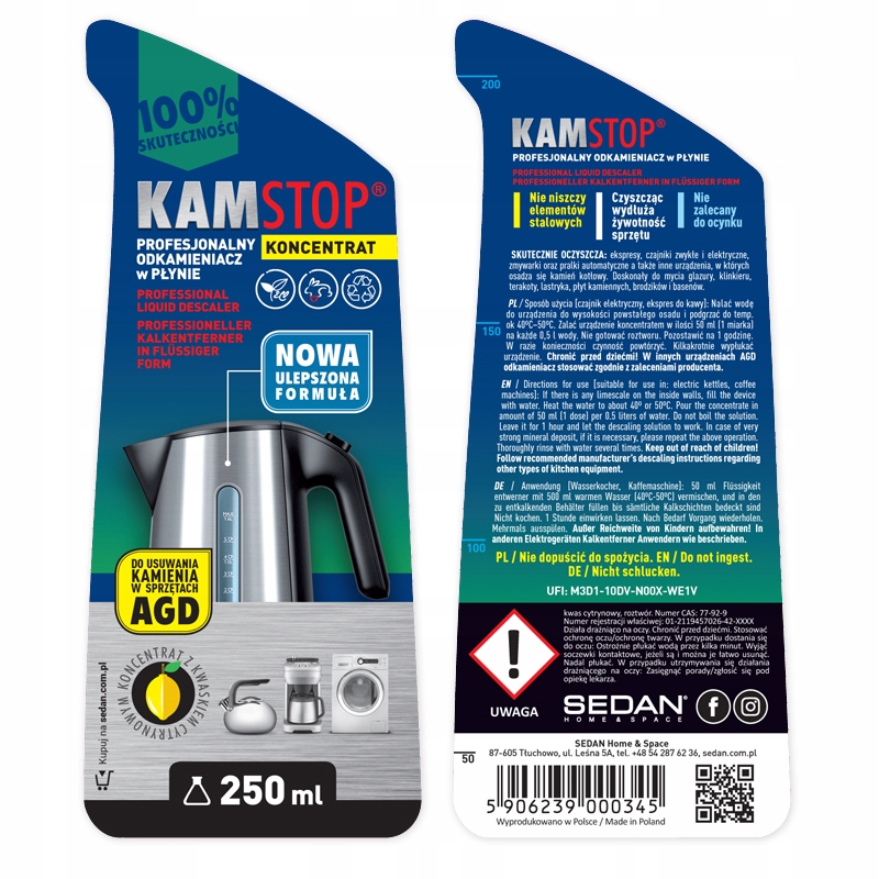 Домохозяйственное оборудование, использующее воду во время работы, подвергается воздействию формирования каменного ила - вредно не только для устройств, но и для нашего здоровья. Чтобы эффективно удалить его, стоит использовать универсальный дизайнер жидкости Kamstop. Представленный дизайнер удобен для использования и безопасен для очищенных устройств. Отныне вы можете избавиться от отложения от камня в чайнике, кофемашины, стиральной машине или расположенной на терракотте, плитки или каменных плитах быстрым и легким способом. Камстоп жидкость отчаянную гарантирует комплексную защиту бытовых приборов. Он эффективно очищает внутреннюю циркуляцию воды от камня, накопленного в устройстве, поэтому его регулярное использование продлевает срок службы устройств и обеспечивает надежную работу элементов, подвергшихся воздействию формирования камня. Если у вас достаточно постоянных каменных осадков на оборудовании и в других местах дома - выберите эффективный и эффективный Descepter Kamstop в жидкости, который в одно мгновение будет решать эту проблемную проблему!