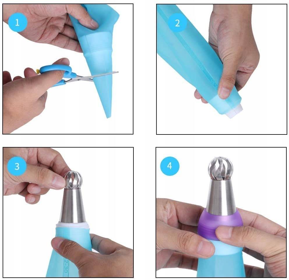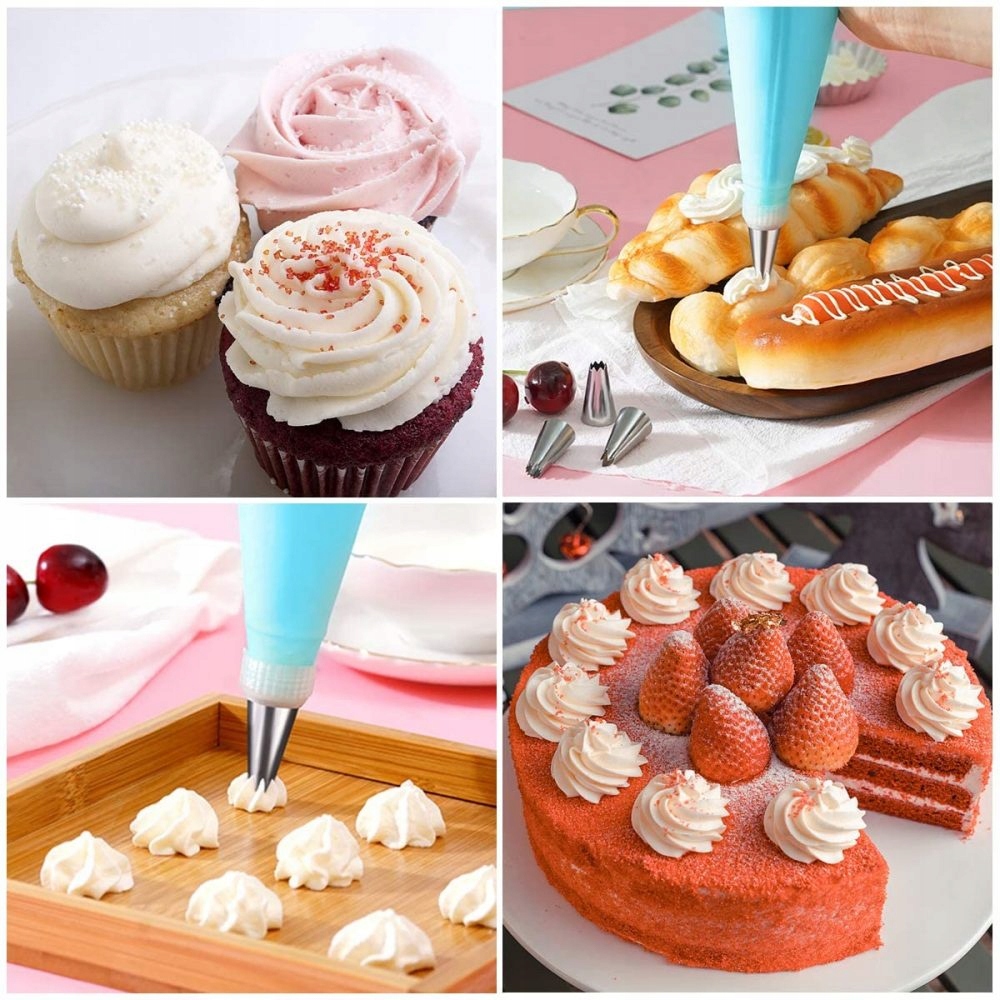Благодаря нашему кондитерской рукаве с взаимозаменяемыми советами, а также лопатками и расчесыванием, вы можете легко получить профессиональные эффекты. Набор из 9 советов рукав позволяет создавать множество узоров. Сборка всего набора - это чрезвычайно простая , как и развертывание и очистка. Силиконовый рукав и многоразовые лезвия достаточно, чтобы промыть под водой с добавлением моющего - стальные кончики подходят для промывки в посудомоечной машине!