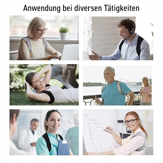 Корректор осанки поставляется в виде подтяжек — просто наденьте их как жилет и затяните нижнюю часть вокруг лямокс использованием прочной и долговечной липучки. Прочность зажима определяется пользователем в соответствии со своими потребностями.