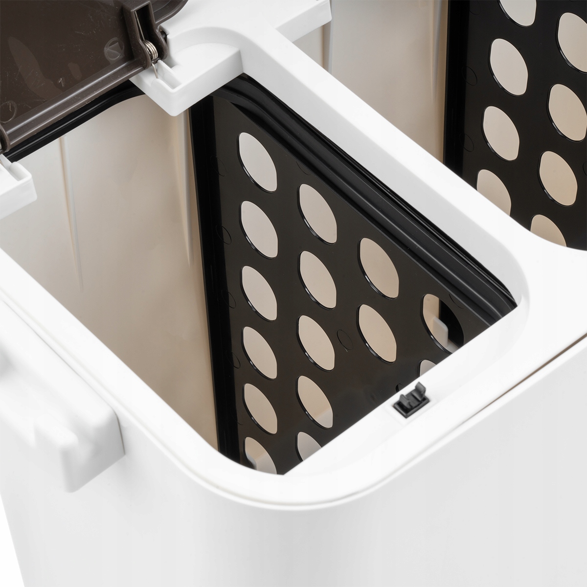 ✋ Каждая корзина закрывается защелкивающейся крышкой, которая поднимается после легкого щелчка в отведенном месте. Чтобы закрыть крышку, осторожно нажмите на нее. Каждый комплект чехлов представлен в трех цветах: кремовом, бежевом и коричневом для облегчения сортировки мусора.