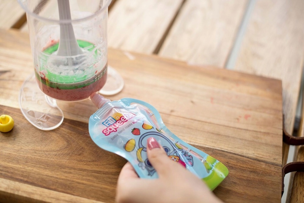 Fill'n Squeeze — это простой способ хранить полезное и вкусное домашнее детское питание в красочных, многоразовых и практичных пакетиках. Поддерживайте здоровый стиль питания и вне дома!
