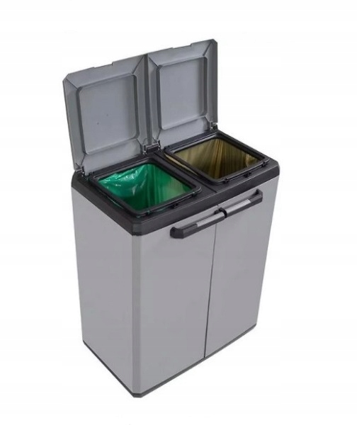 Крышка с двумя отделениями, механически открывающимися сверху, позволяет удобно хранить отходы. Механизм открывания обеспечивает быстрый доступ внутрь, что повышает комфорт использования.