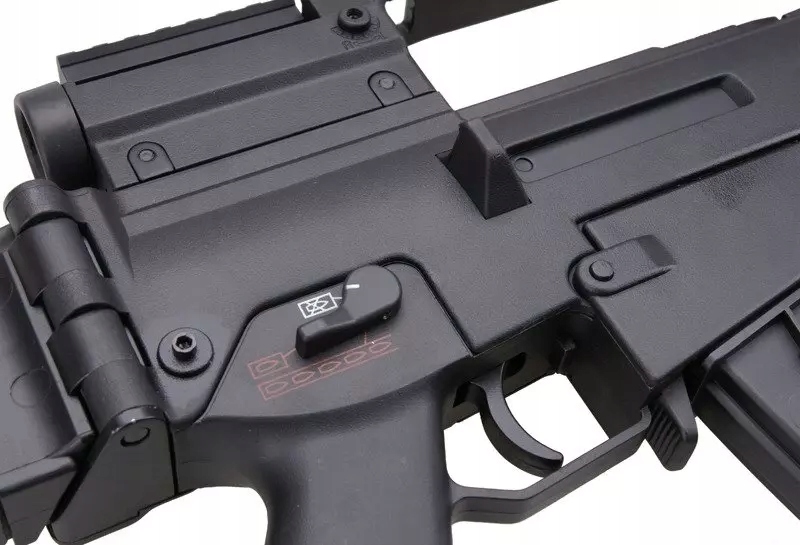 JG1538 из конюшни JG является продолжением одной из лучших реплик этого производителя - JG0608, которая уже является легендой в страйкбольном сообществе. Эта версия оснащена телескопом, встроенным в ручку для транспортировки, и складывающимся вбок полным прикладом. Дополнительно в верхней части транспортировочной ручки, на высоте телескопа, имеется RIS-рейка, позволяющая подсоединить коллиматорный прицел.