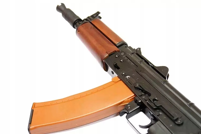 Использование деревянных элементов и матовой поверхности. черная отделка придает копии очень реалистичный вид. Приклад РК-01 складывается на боковую часть корпуса, что значительно уменьшает размеры реплики. Аккумуляторная батарея помещается под крышкой приемника. Реплика частично разворачивается, как и ее аналог огнестрельного оружия. Винтов здесь практически нет, благодаря использованию конструкции на основе стандарта VFC. На левой стороне корпуса расположена боковая монтажная рейка типа «ласточкин хвост».
