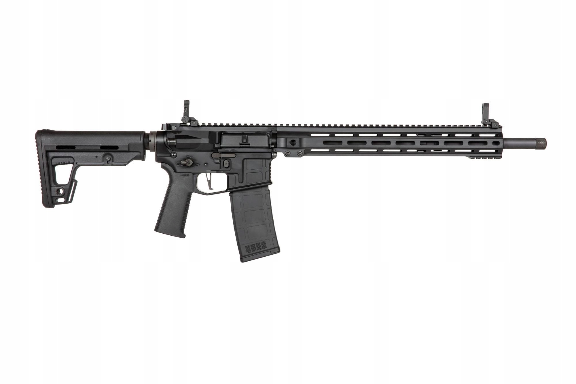 AR-096E от ARES — это последняя версия классического карабина семейства AR15. Он отличается новым дизайном корпуса, прочной посадкой, изготовлен из алюминия, использованием электронной системы EFCS и двигателя, а также пистолетной рукояткой SLIM. Их особый дизайн, зауженный по сравнению с традиционными репликами AEG, повышает реалистичность за счет приближение габаритов к огнестрельному аналогу. Все элементы реплики, кроме пистолетной рукоятки и приклада, выполнены из металла.