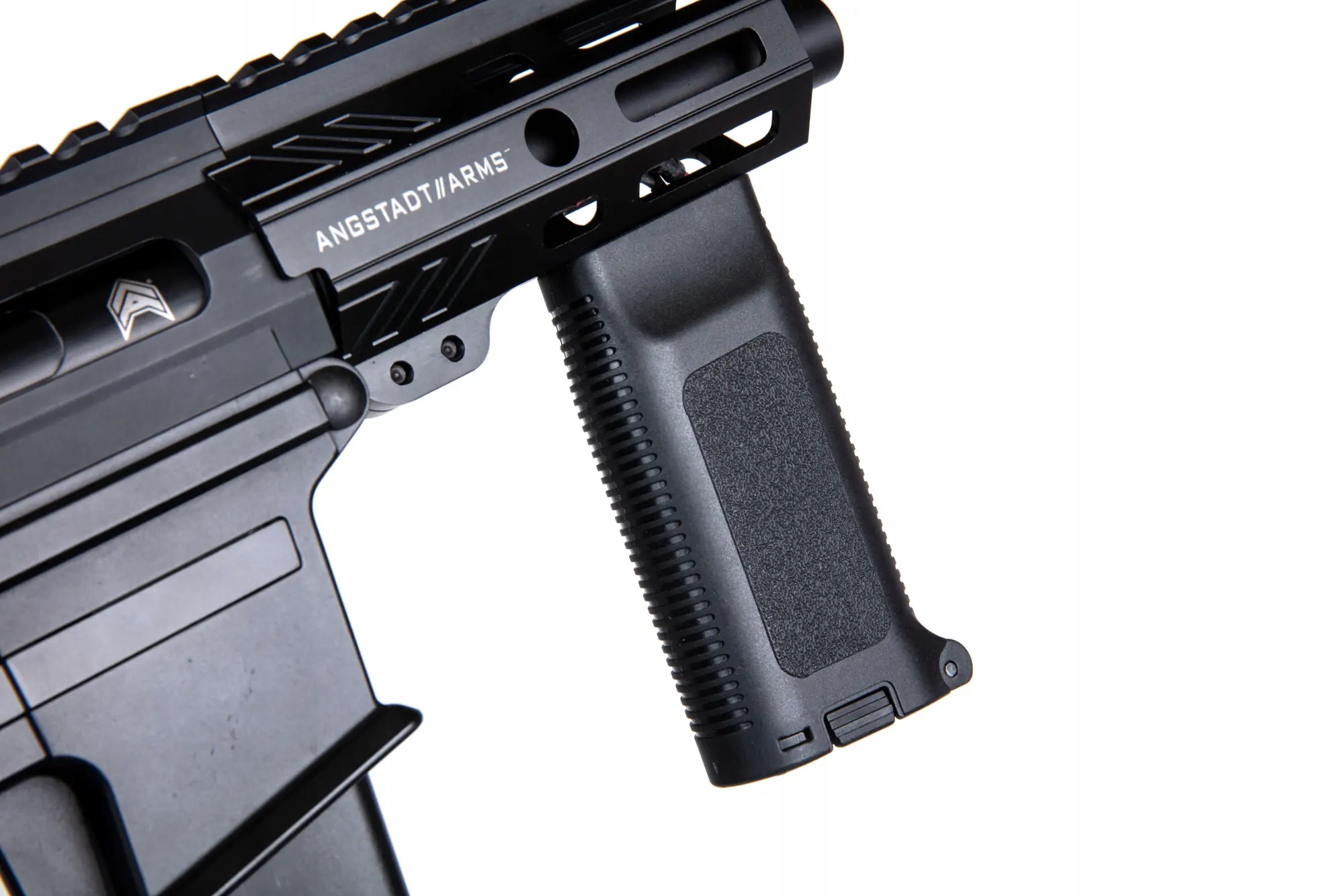 - Лицензионная маркировка Angstadt Arms на передней части, ствольной коробке и макете затворной рамы,