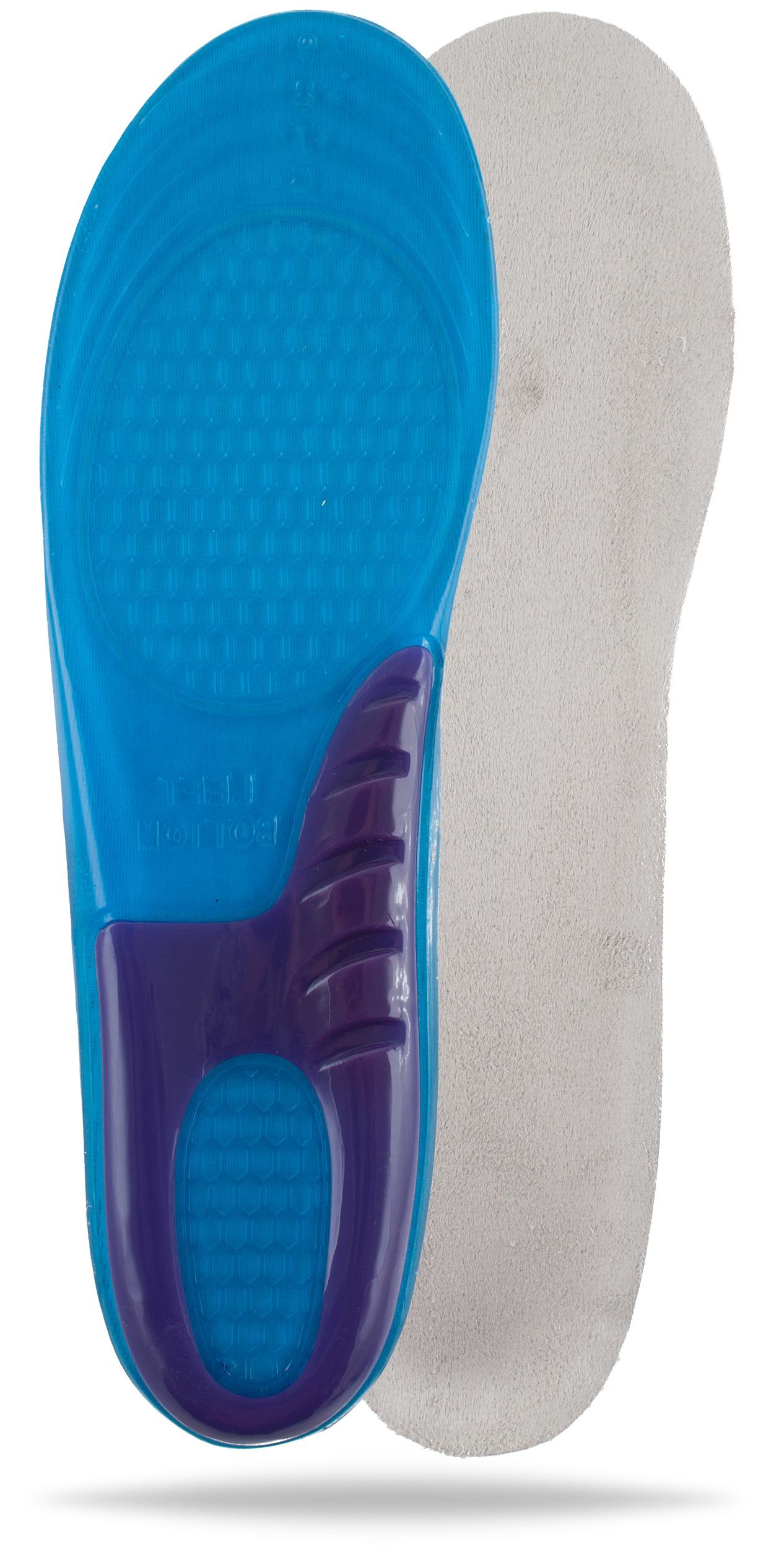 с дополнительным подкреплением в задней части вставки, что помогает облегчить центральную часть пятки, то есть место, где создается воспаление, называемое пяткой. Снижение давления в центр пятки также уменьшает боль, вызванную шпором. Эта вставка также имеет должным образом профилированную часть, ответственную за плоские ноги. Верхняя часть вставки покрыта приятной тканью, которая также выполняет антикомпотальные функции.