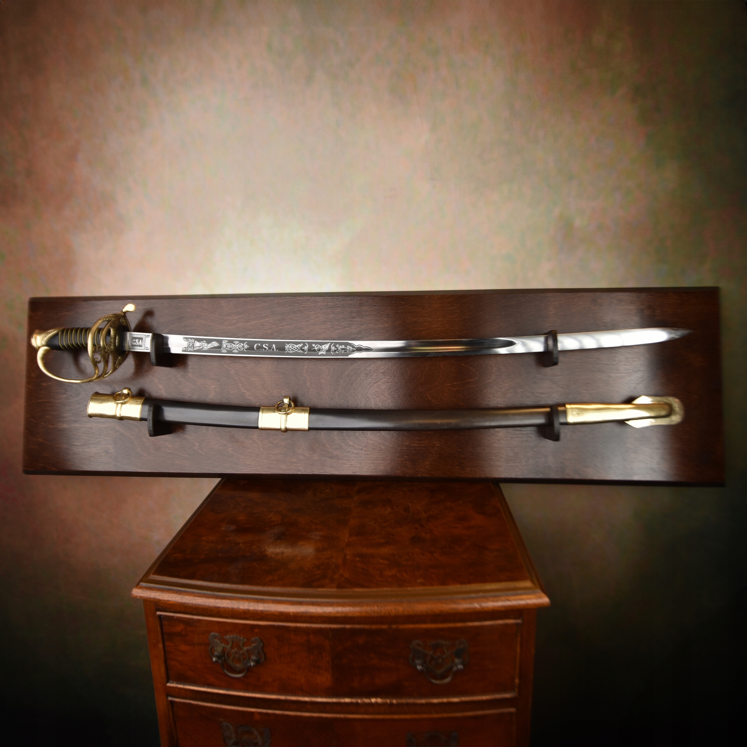 Деревянная коричневая двойная доска для демонстрации сабли в ножнах.