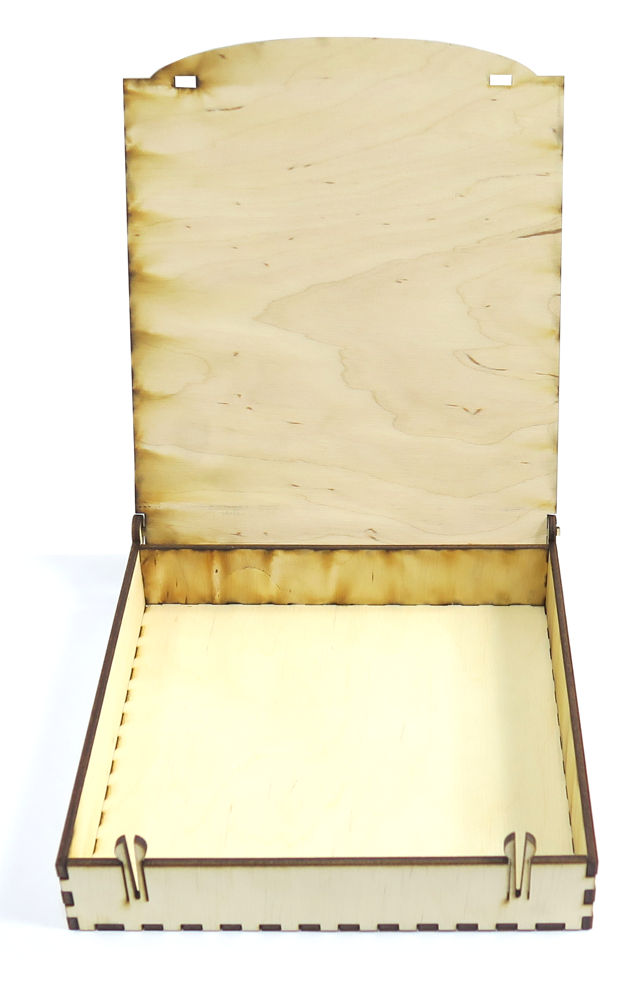 3 мм в фанерную коробку с открытой крышкой и защелкой с внешними размерами: 16x16x3cm