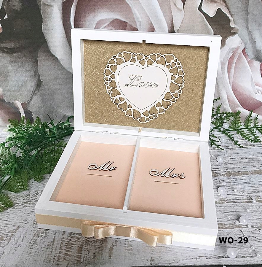 Коробка для обручальных колец из дерева, окрашенная в белый цвет