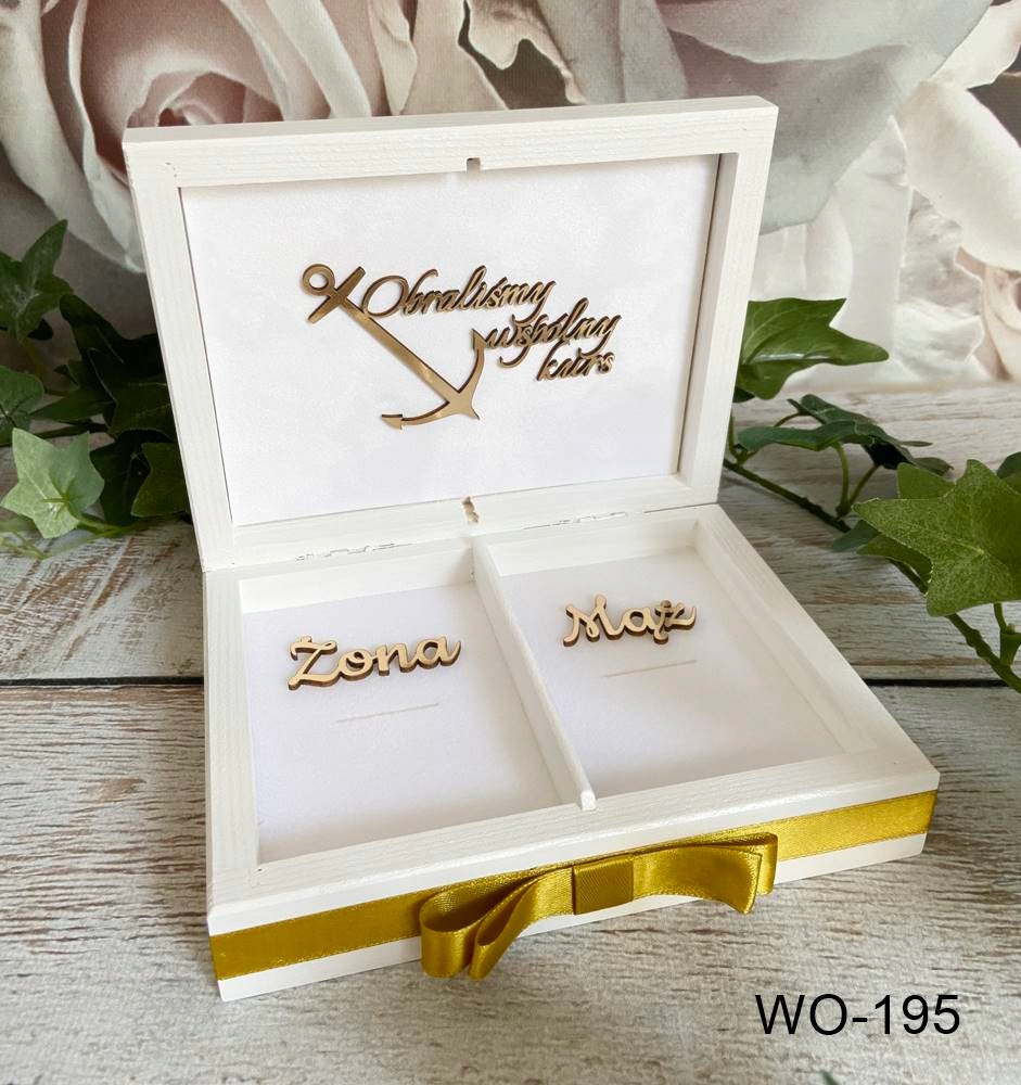 Коробка для обручальных колец из дерева, окрашенная в белый цвет