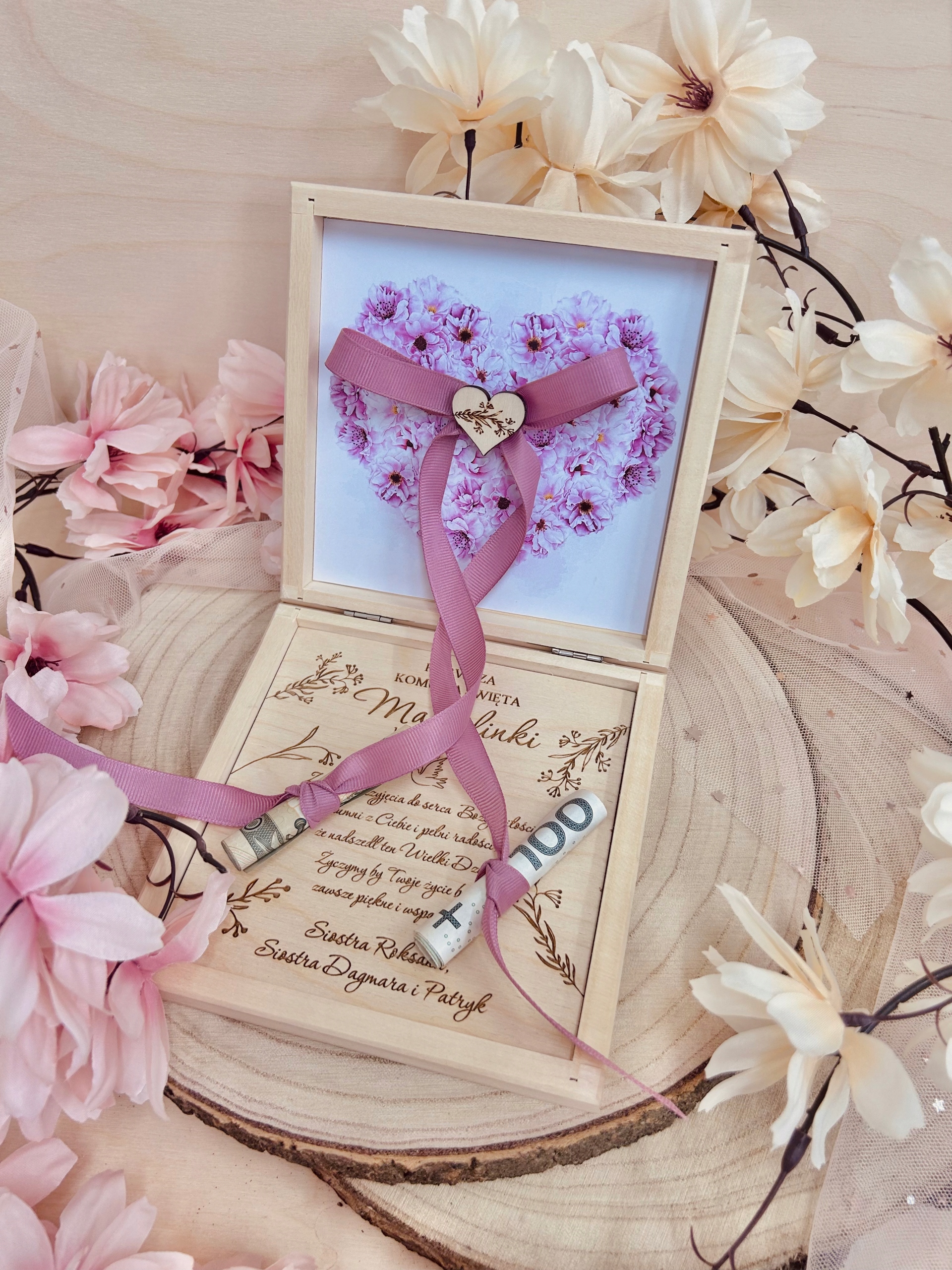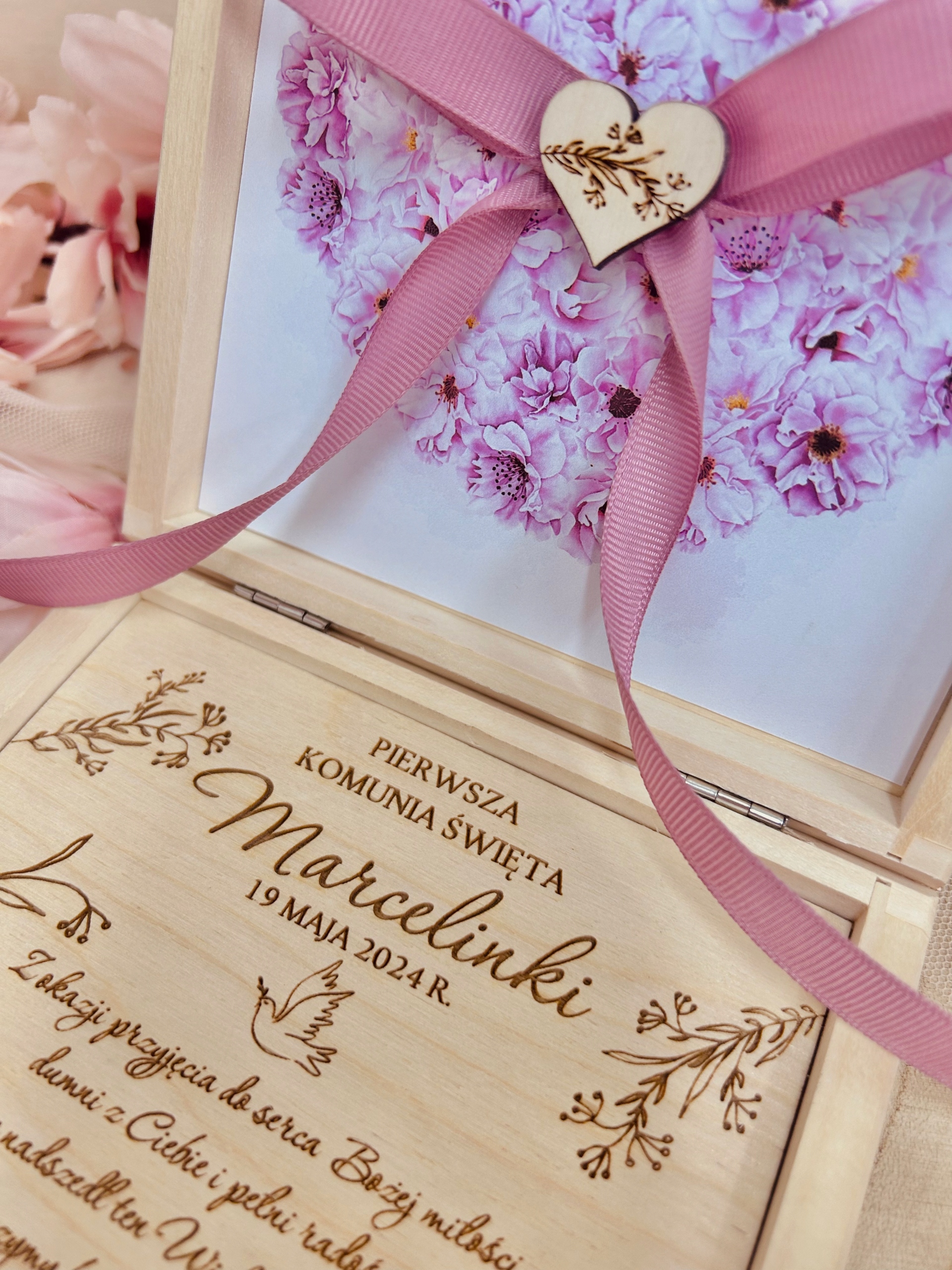 Персонализированная деревянная денежная коробка - сувенир святого причастия h2>
