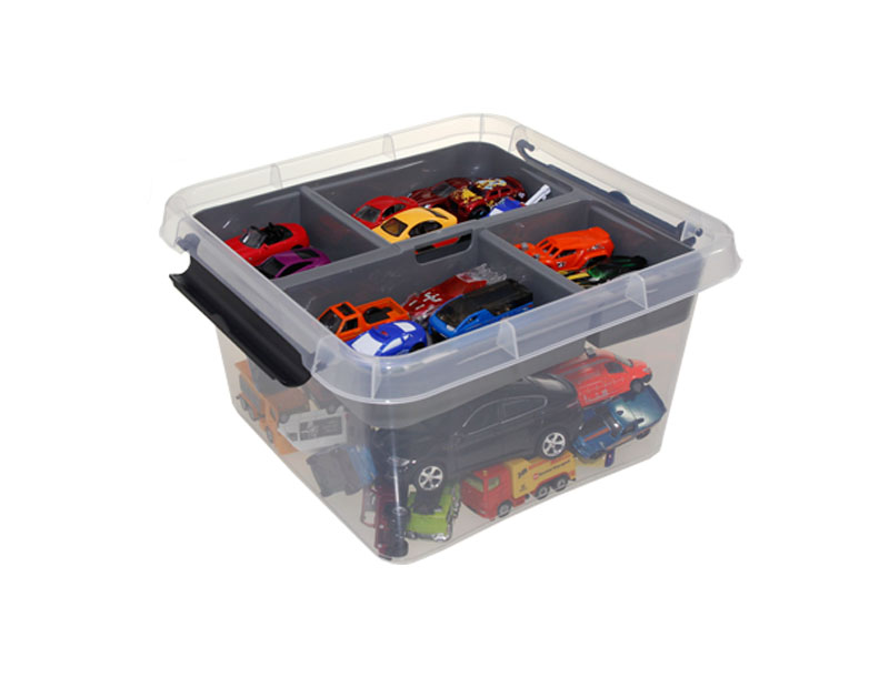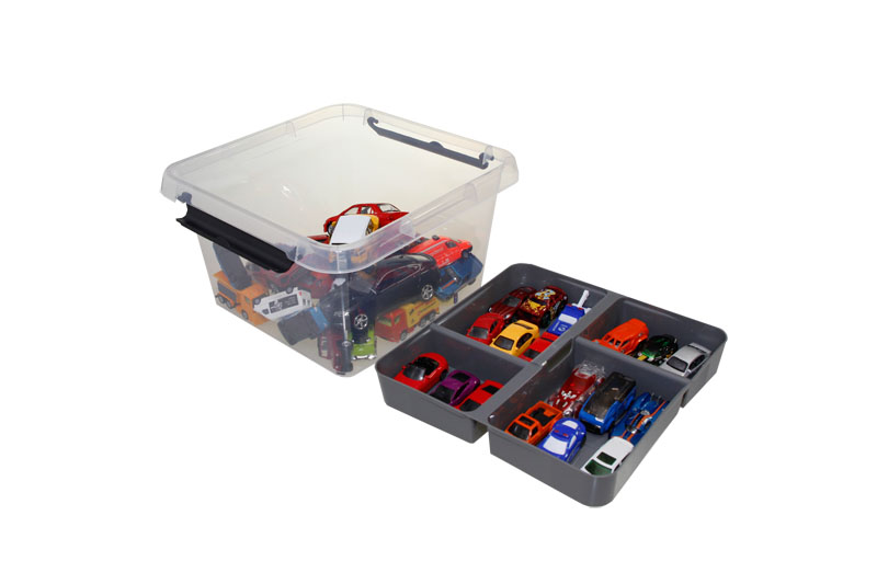 Разделы позволяют разобраться в мелочах и не допускают смешивания. Тем не менее, вы можете держать более крупные предметы в коробке. Он работает как в качестве контейнера для шитья (иглы, нити, пряжи, благи и т. Д.), А также в качестве коробки для винтов и инструментов. В комнате малыша он отлично работает как контейнер для автомобилей - пружины или для блоков Lego. На вершине вы сохраняете наибольшее количество любимых. Клипы по бокам предотвращают открытие коробки.