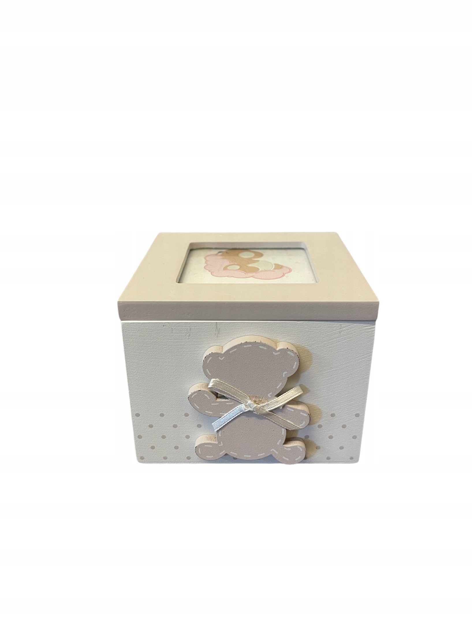 Коробка с фотографией плюшевого мишки в подарок на крещение