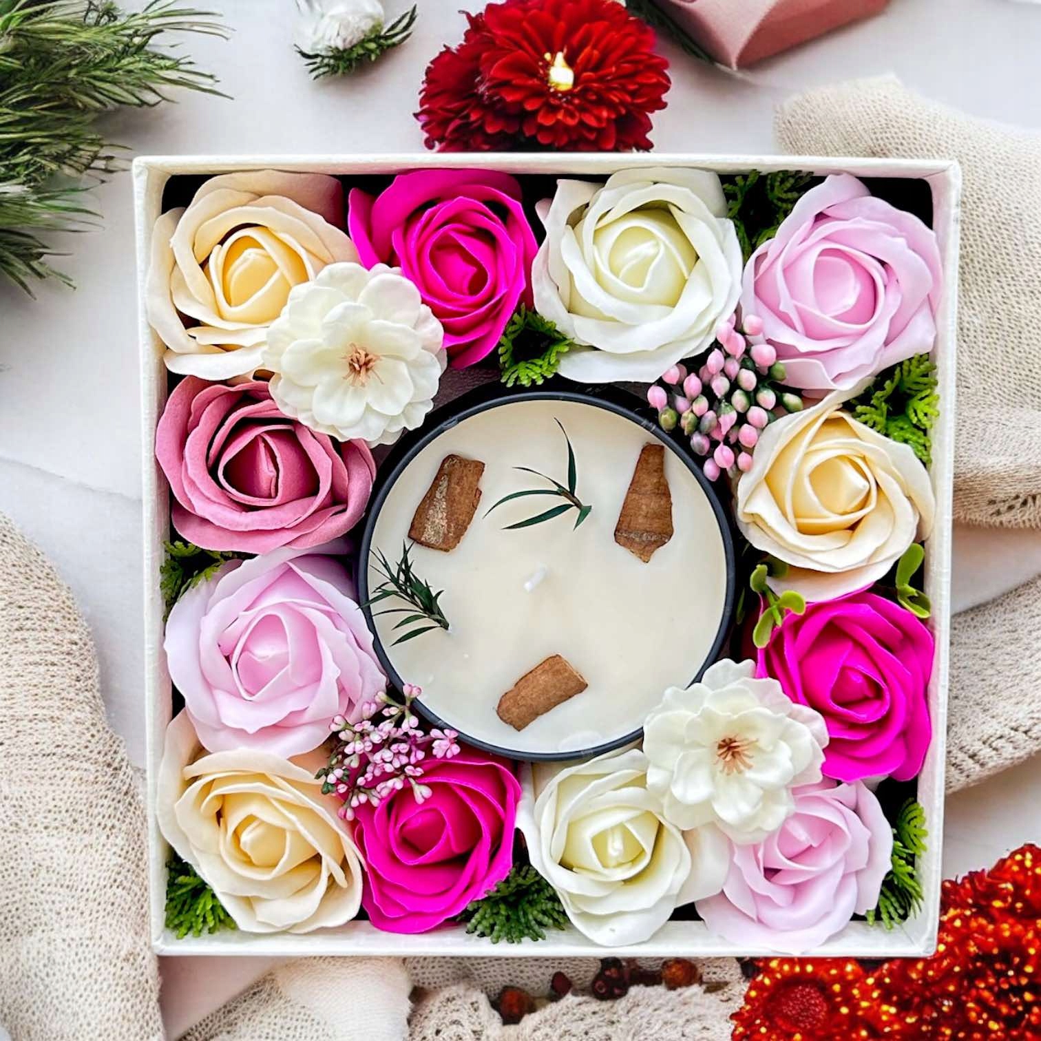❇️Шкатулка с мыльными цветами и ароматической свечой