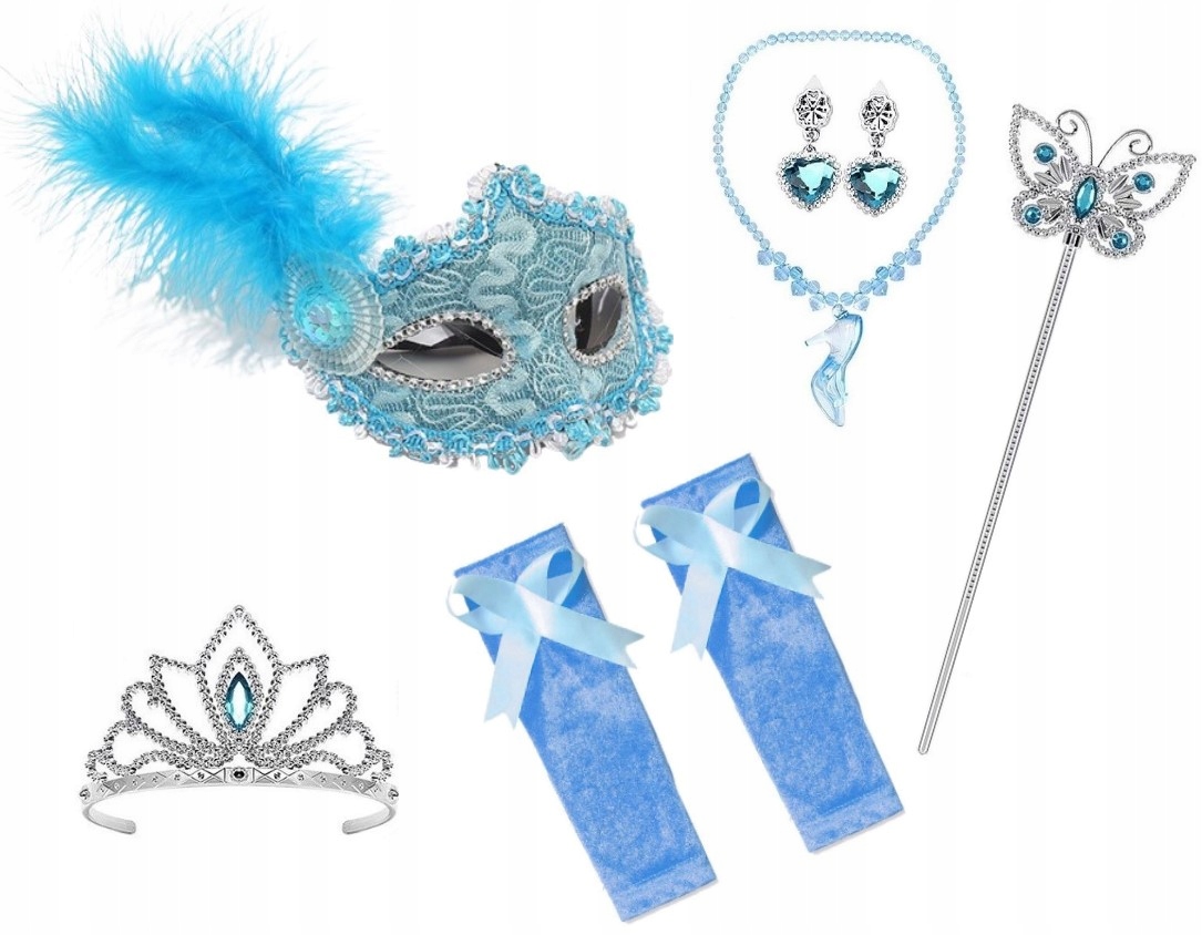 КОРОНА Скипетр ПЕРЧАТКИ МАСКА СИНИЙ НАБОР АКСЕССУАРОВ ЗОЛУШКА ЗОЛУШКА 6 ЧАСТЕЙ