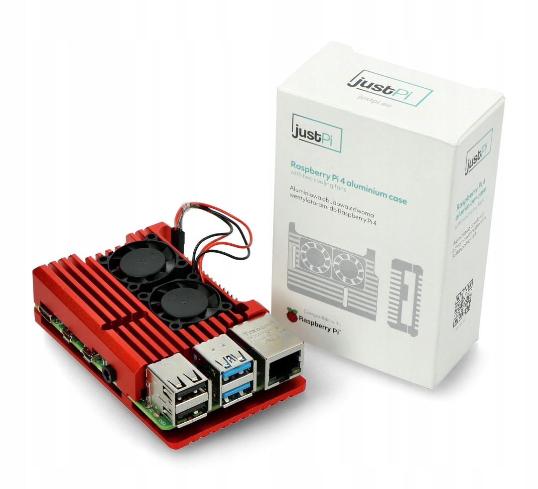Корпус JustPi для Raspberry Pi 4B — алюминий с двумя вентиляторами — красный