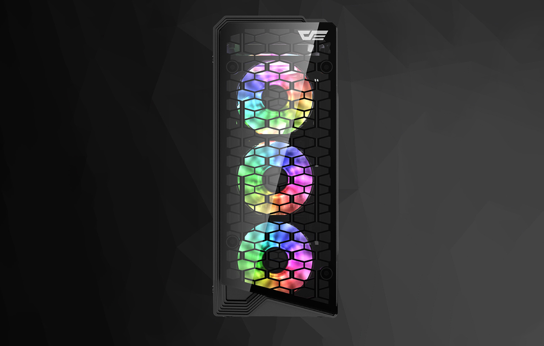Корпус выглядит действительно великолепно. Его передняя панель привлекает внимание интересным сотовым узором. Он прозрачный, что позволяет добиться фантастических эффектов с помощью аксессуаров RGB. Передняя панель изготовлена из закаленного стекла, а боковая – из прочного акрилового стекла толщиной 4 мм.