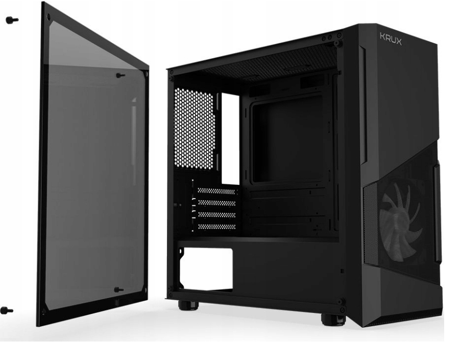 Просторный салон в небольшой и скромной упаковке — это корпус KRUX Cosmo. Скромный снаружи, просторный внутри, поддерживает материнские платы как mATX, так и miniITX. Чтобы было очень удобно любоваться компонентами, боковая панель корпуса представляет собой цельную панель из закаленного стекла, позволяющего заглянуть внутрь и устойчивого к царапинам и другим механическим повреждениям.