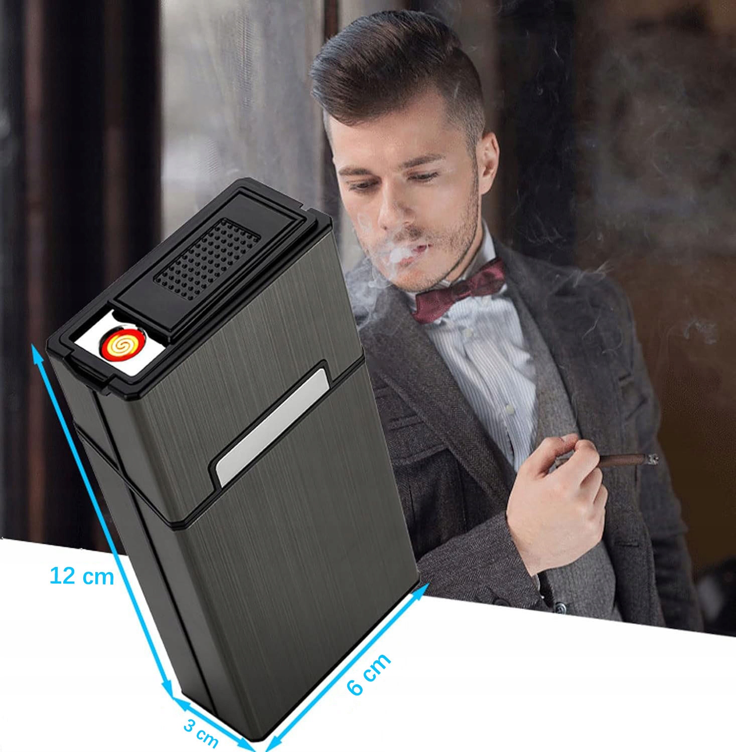 🚬🚬 с электрическим зажигалкой: Корпус сигарет с одним маленьким USB -зажигалкой наверху. Это может быть заряжена USB -кабелем (включенным). Экономия денег вместо использования одноразовых зажигателей.