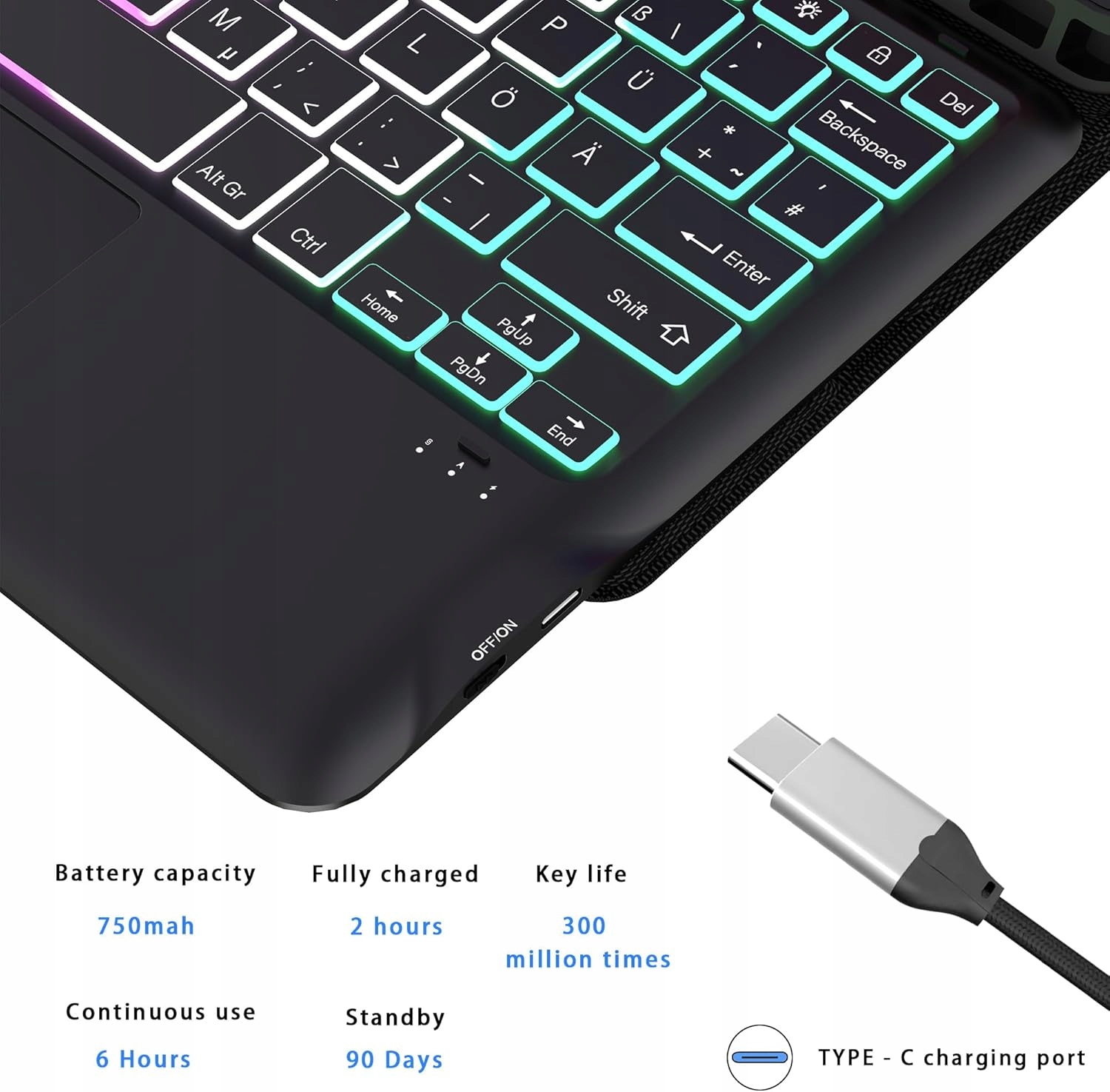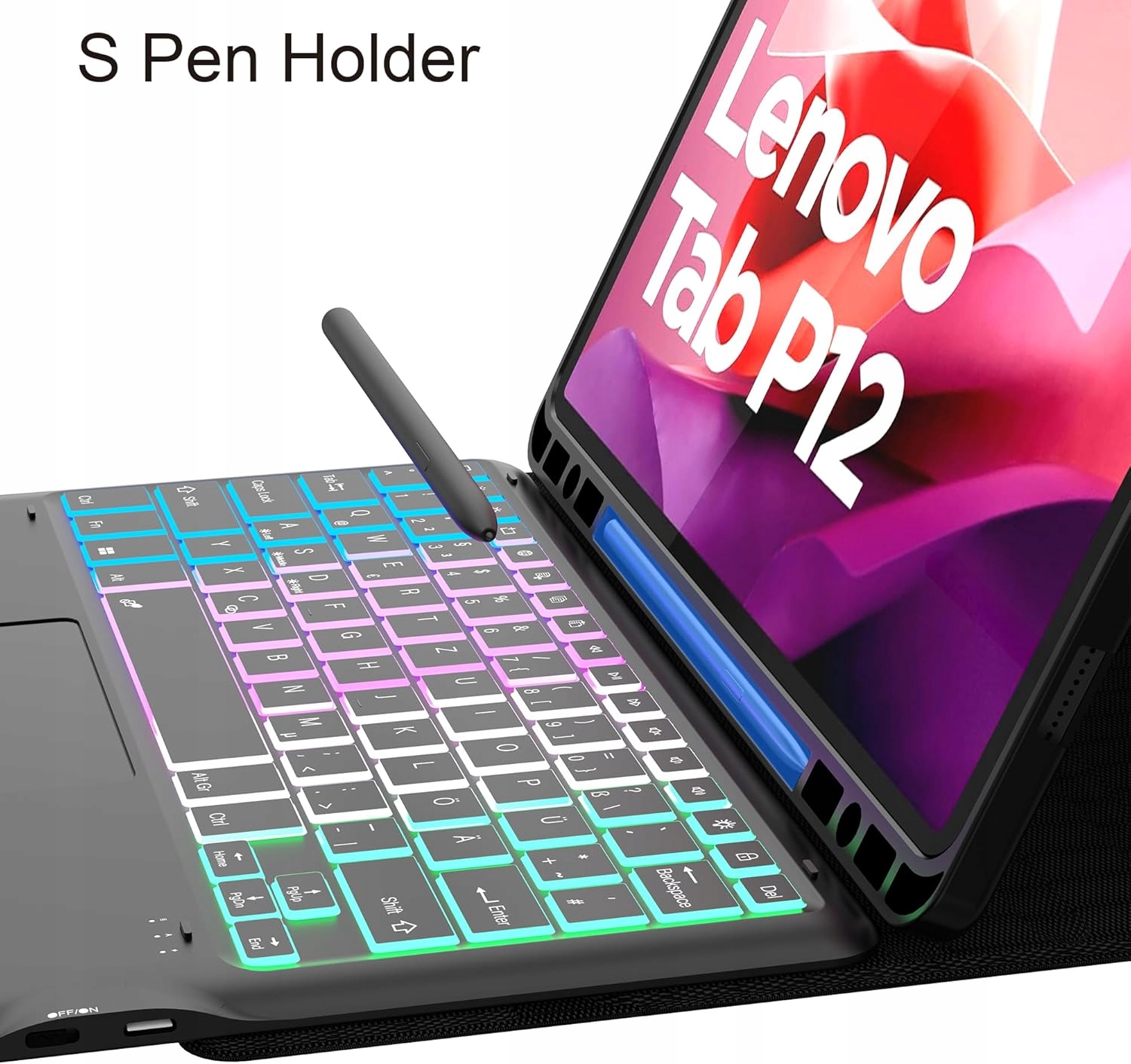 Lenovo Tab P12 12,7 дюйма с съемной клавиатурой: 3-зоновая DIY, 7-цветовая клавиатура освещения с чехлом TrackPad-Qwertz для клавиатуры с ручкой с ручкой для льня